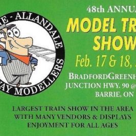 The Lakeshore Model Railroaders’ Flea Market is approximately 12,000 feet and is one of the largest such events in Canada. With over 80 tables new and used, just released virtually antique trains; from models to structures to scenery supplies to memorabilia; from good buys to great buys, chances are we have something to interest any model rail enthusiast!